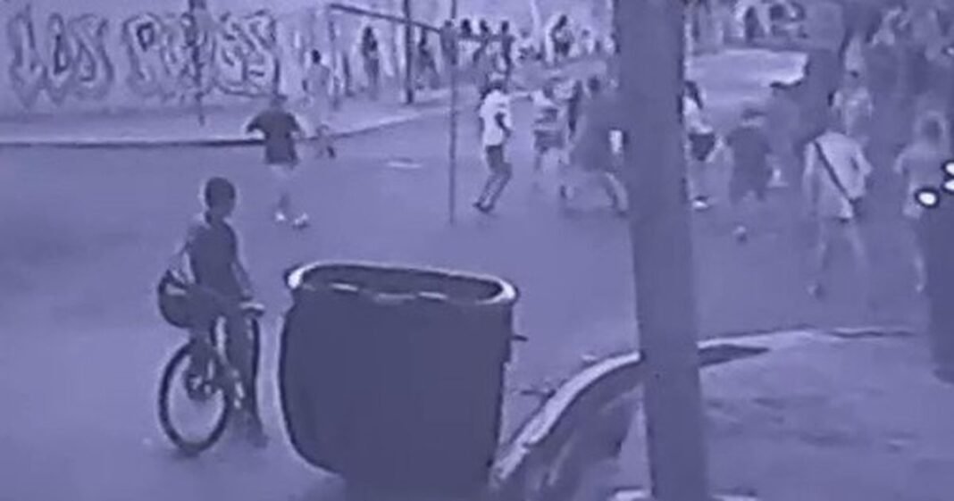 En el video se ve a un grupo de personas que comienza a pelear a la entrada. Segundos después, se escucha la detonación. Facundo Cabello terminó herido de un disparo en el pie, en la zona del empeine. Los investigadores creen que podría haber sido una bala perdida.